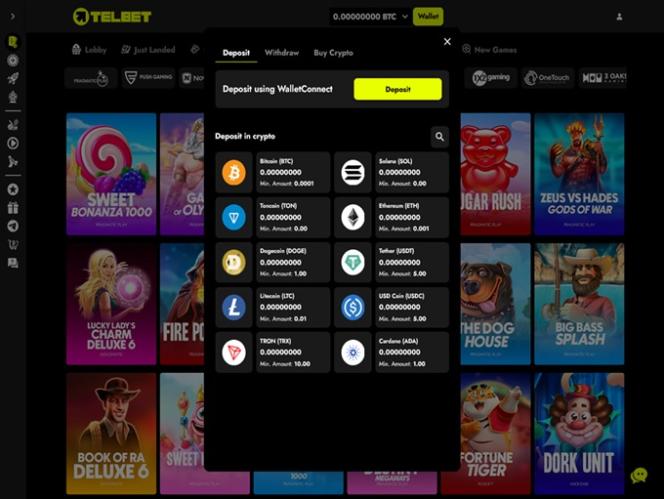 TelbetCasino — это прежде всего сайт азартных игр, ориентированный на криптовалюты, поэтому игроки могут вносить и выводить средства, используя различные криптовалюты, такие как Bitcoin , Bitcoin Cash , Cardano , Dogecoin , Ethereum , Litecoin , Solana , Toncoin , Tron , USD Coin , Tether и Ripple . Кроме того, игроки могут управлять своими средствами с помощью кредитных и дебетовых карт, таких как Visa и Mastercard .