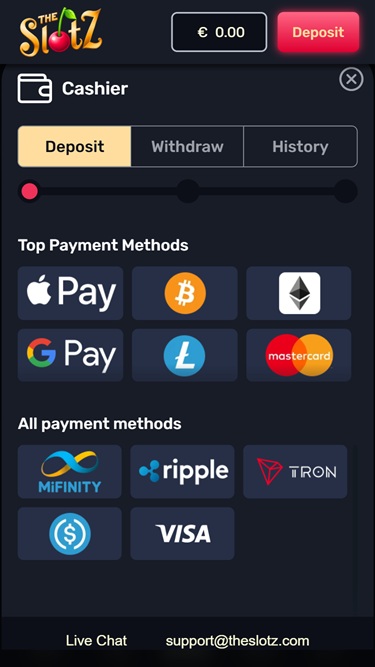 Казино TheSlotz также предлагает еженедельный бонус , который включает в себя бонус за пополнение счета и бесплатные вращения. Чтобы его получить, просто внесите соответствующий депозит и активируйте бонус в течение промо-периода — только один раз в неделю. Бонус начисляется автоматически, но если этого не произошло, свяжитесь со службой поддержки, прежде чем делать ставки.