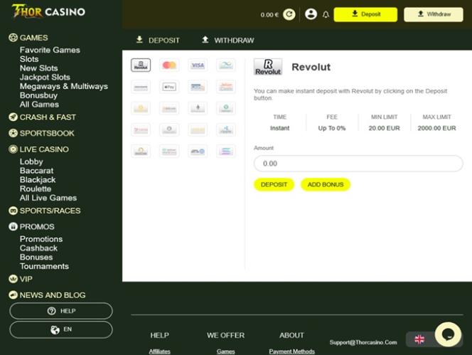 В казино Thor Casino представлен широкий выбор способов оплаты , включая криптовалюты и другие популярные платежные системы. Независимо от того, предпочитаете ли вы криптовалюту или свою старую добрую платежную карту, вы сможете легко пополнить свой счет.