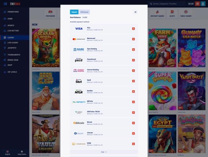Хотя визуальное оформление имеет важное значение для любого казино, игроков в первую очередь интересуют доступные им развлекательные возможности. Именно поэтому казино TikiTaka стремится предложить огромную коллекцию онлайн-слотов, настольных игр и игр с живыми дилерами .