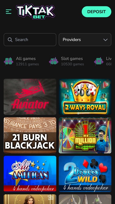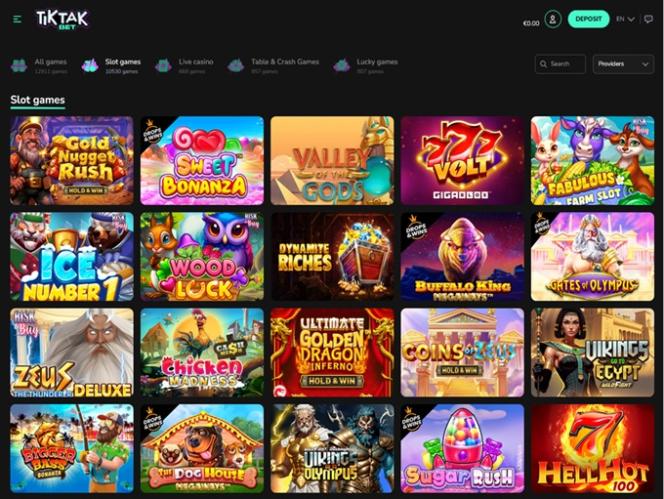 Теперь давайте перейдем к разделу онлайн-слотов и рассмотрим некоторые из самых популярных игр. TikTak Bet предлагает впечатляющую библиотеку игровых автоматов — в этой категории представлено более трех тысяч вариантов на выбор. Независимо от того, только ли вы начинаете исследовать мир онлайн-азартных игр или уже являетесь опытным игроком, вы без труда найдете идеальную игру на свой вкус. Здесь действительно найдется что-то для каждого!