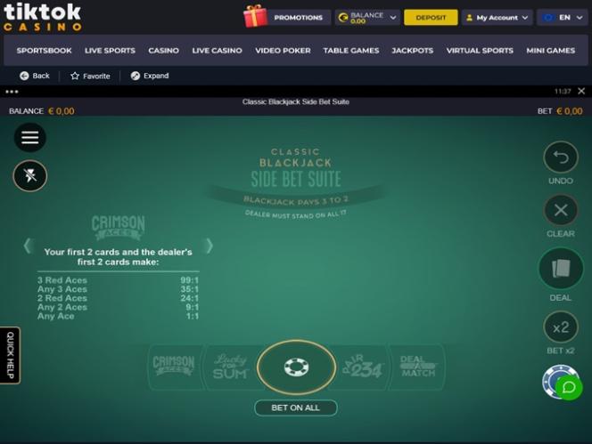 Если вас больше привлекают ставки на спорт, то вас обрадует новость о том, что в TikTok Casino также есть подробный раздел ставок на спорт, где вы можете делать ставки до или во время прямых трансляций ваших любимых спортивных матчей по футболу, баскетболу, теннису, боксу, хоккею и другим видам спорта. Также есть раздел виртуальных видов спорта с множеством вариантов для виртуальных болельщиков.
