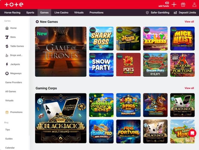 В казино Totesport представлен широкий выбор слотов, включая как классические, так и видеослоты. Здесь можно поиграть в несколько лицензионных игр, а также побороться за прогрессивные джекпоты с многомиллионными призами.