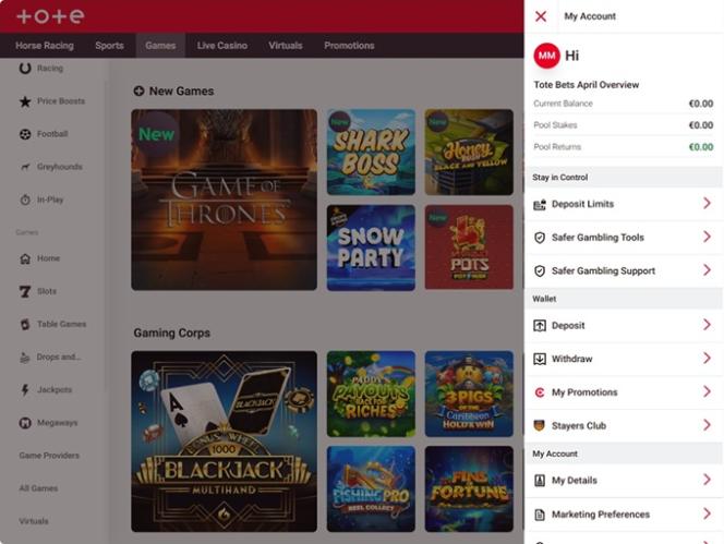 Помимо традиционного казино, Totesport предлагает своим игрокам полноценный раздел ставок на спорт и лотерей.