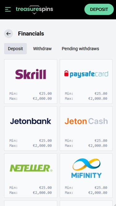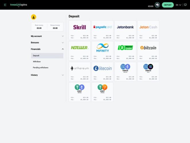 Варианты банковских операций в Treasure Spins Casino