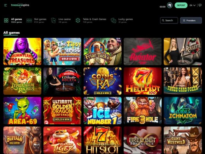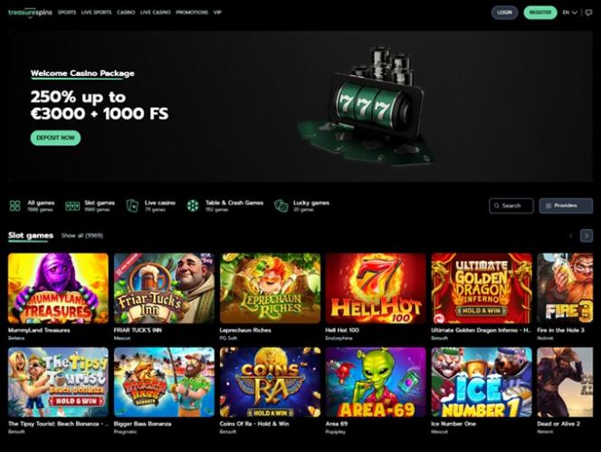 В игровой библиотеке казино Treasure Spins представлены тысячи привлекательных онлайн-слотов, и, честно говоря, мы и не ожидали ничего меньшего от игорного заведения с таким известным брендом.