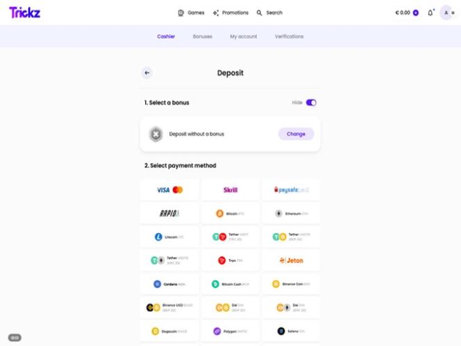 Бонусы и акции в казино Trickz щедры и выгодны. Давайте рассмотрим некоторые привлекательные преимущества, на которые могут рассчитывать игроки на этом игорном сайте!