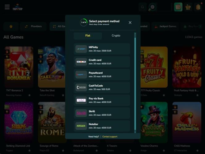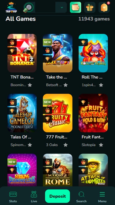 Если вы решите сделать Trip2Vip своим основным казино, вам не придется беспокоиться об ограниченном количестве игр, поскольку бренд предлагает более 115 уникальных студий. Этот выбор огромен и разнообразен, предоставляя тысячи фантастических игр.