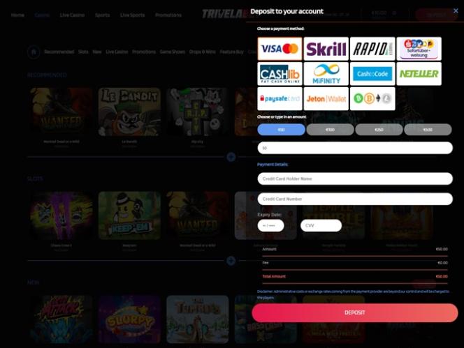 Казино Trivelabet — это онлайн-казино и сайт для ставок на спорт, принадлежащий компании, регулируемой и лицензированной Игровой комиссией Канаваке. Казино ориентировано в основном на игроков из Швеции, Норвегии, Италии, Польши, Финляндии, Дании, Бельгии, Швейцарии, Эстонии, Канады и Австрии, а игровая платформа доступна на нескольких языках, включая чешский, немецкий, греческий, английский, испанский и другие.