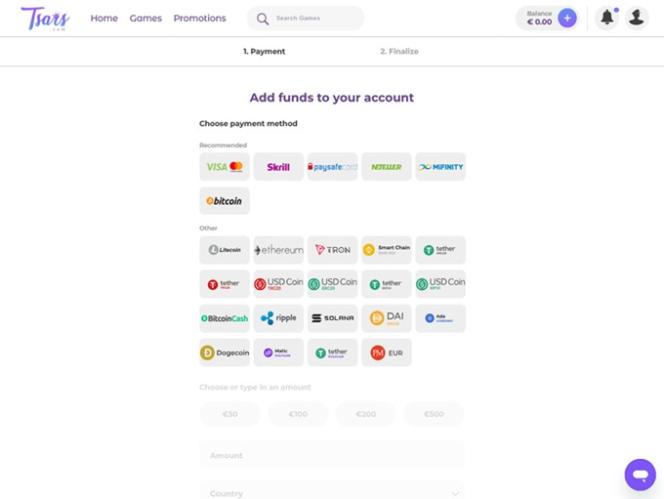 Ниже вы найдете различные способы пополнения и вывода средств в казино Tsars.