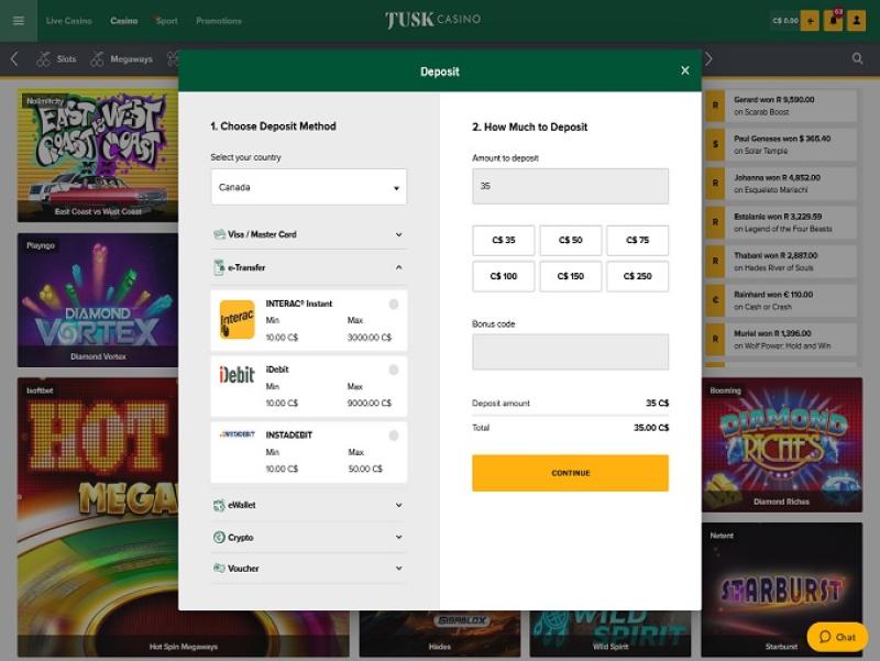 Казино Tusk предлагает хороший бездепозитный бонус для игроков, чтобы они могли сначала попробовать казино, что приятно, у них есть приличный выбор игр, в которые можно играть, и в целом все, что вам нужно в казино. Мне не повезло с бездепозитным бонусом, но в целом впечатления хорошие.