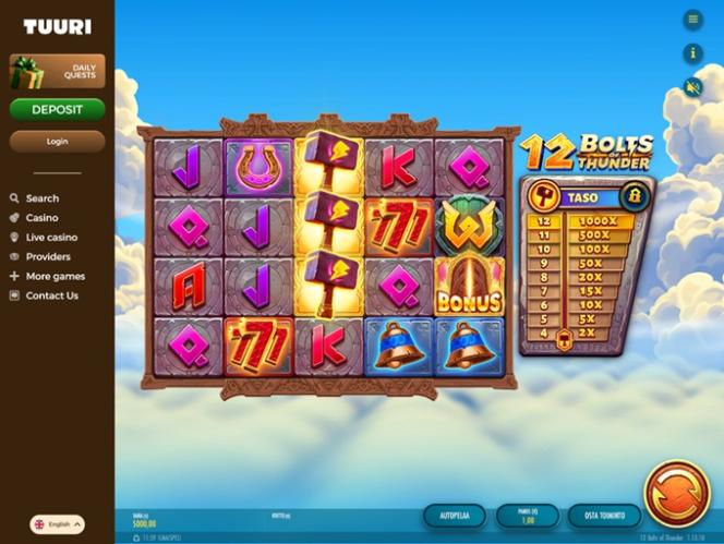 Tuurikasino — это современное онлайн-казино, которое привлекло большое внимание финских игроков, предлагая впечатляющий выбор игр, включая сотни онлайн-слотов, игры с живыми дилерами, настольные игры и мгновенные краш-игры. Игроки также получат доступ к нескольким акциям, включая выгодные бонусы, специальные VIP-награды и ежедневные задания, которые они могут выполнить.