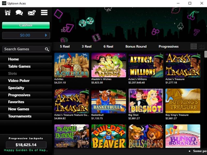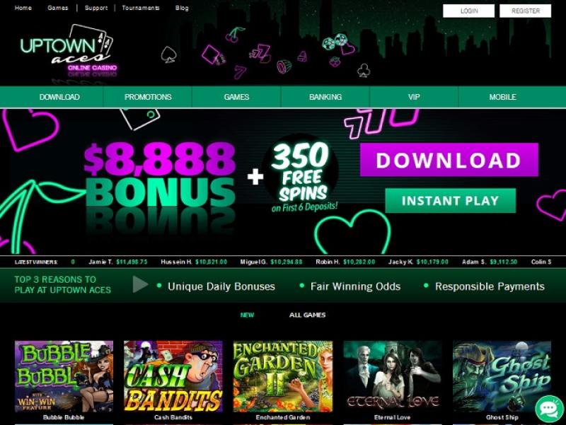 Uptown Aces — одно из двух казино Deckmedia, работающих на программном обеспечении Real Time Gaming , которое предлагает как мгновенную игру, так и загружаемую версию казино.
