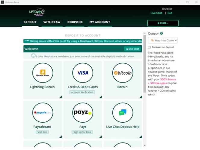 ХОРОШОUptown Aces Casino — это динамичное место для онлайн-игр с упором на криптовалюту. Как крипто-казино, оно предлагает игрокам удобство и безопасность использования цифровых валют для депозитов и выводов. Платформа может похвастаться широким спектром игр на базе Realtime Gaming (RTG).
