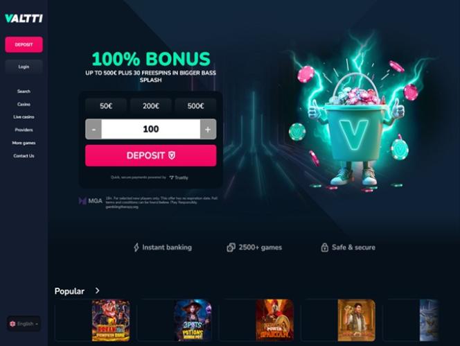 Valttikasino — это онлайн-казино, зарегистрированное в соответствии с законодательством Мальты. Этот игорный бренд имеет лицензию и регулируется Управлением по азартным играм Мальты и ориентирован на игроков из Финляндии.