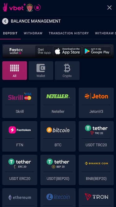 Варианты банковских операций в Vbet Casino