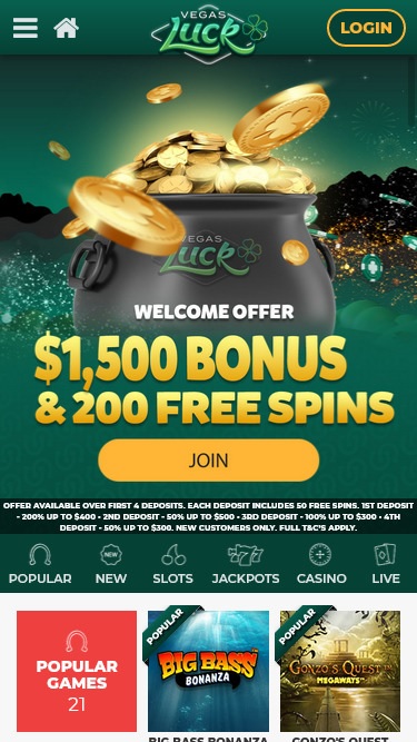В казино Vegas Luck представлено более 1700 слотов от таких разработчиков, как Microgaming, NetEnt, IGT, Quickspin, Playtech и многих других. Игры отличаются бесчисленным количеством тем и функций. Есть возможность выиграть прогрессивный джекпот, а также доступны мобильные версии слотов.
