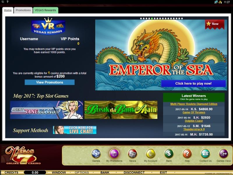 Казино Vegas 7 предлагает игрокам бонусы: 100 баллов можно обменять на 1 фунт стерлингов. Однако, к сожалению, казино вводит требование по отыгрышу в 30 раз для всех полученных бонусов.