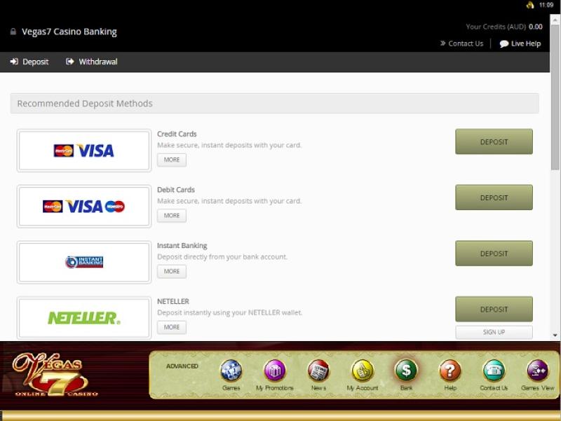 Варианты банковских операций в Vegas 7 Casino