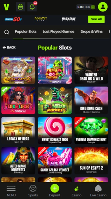 Весь контент Velobet хорошо структурирован и организован по следующим категориям: Спорт, Марафон, Live, Казино, Live-казино, Виртуальный спорт, Киберспорт, Мини-игры и Гонки. Здесь игроки могут выбрать свой любимый тип игры и расслабиться, наслаждаясь развлечениями, которые предлагает это онлайн-казино.