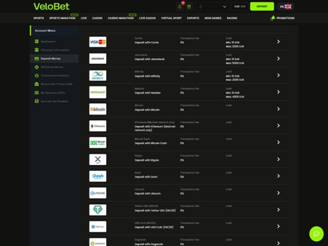 На момент написания этого обзора, хотя Velobet и включил VIP-раздел, подробностей о существовании программы лояльности было немного. Для операторов онлайн-казино не редкость добавлять более подробные функции позже, поэтому, возможно, это относится и к данному оператору.