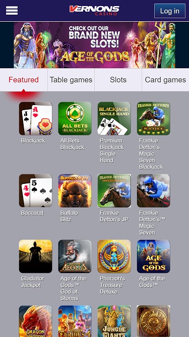 В казино Vernons значительную часть игр составляют игровые автоматы, и игроки найдут здесь множество уникальных видеослотов, классических слотов и игр с прогрессивным джекпотом, таких как Beach Life, Sweet Party и Spamalot Holy Grail, каждая из которых предлагает миллионные призы.