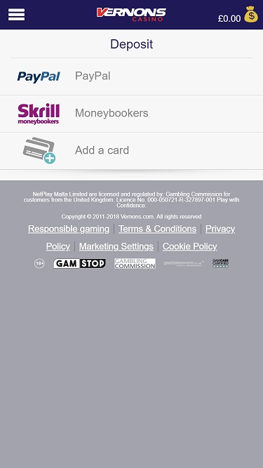 Казино Vernons имеет лицензию на осуществление игорной деятельности на территории Олдерни и Соединенного Королевства.