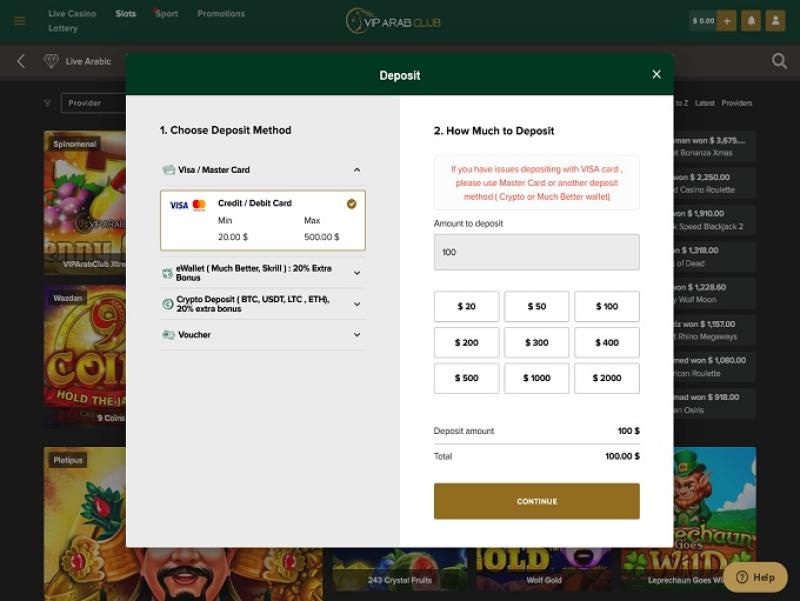 Ниже представлен список акций и предложений, действующих в VIP Arab Club Casino.