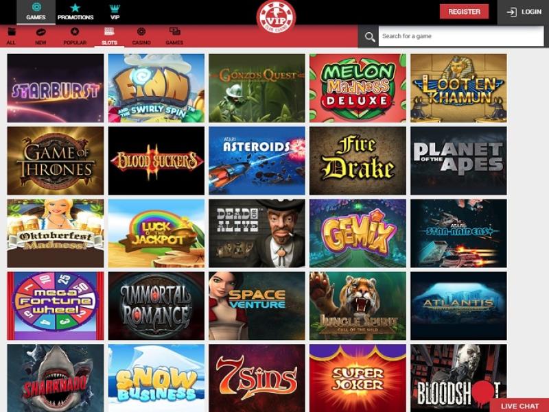 В VIP Club Casino представлен широкий выбор классических и видеослотов, а также разнообразные тематики и функции. В слотах доступны прогрессивные джекпоты, способные выплачивать крупные пяти- и шестизначные денежные призы, а также мобильные версии, позволяющие играть со смартфона или планшета.Программа бонусных баллов