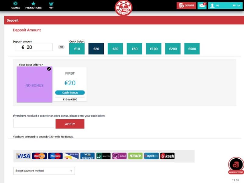 Банковская система в VIP Club достаточно хороша: депозиты и снятие средств принимаются через Visa, ecoPayz, Boku, Skrill, MasterCard, Maestro, Eco, Neteller, Solo, Diners и Click2Pay. В казино установлен лимит в 1500 фунтов стерлингов в неделю и 3000 фунтов стерлингов на вывод средств, а выплаты могут занять от 7 до 10 дней.Варианты банковских операций в VIP Club Casino