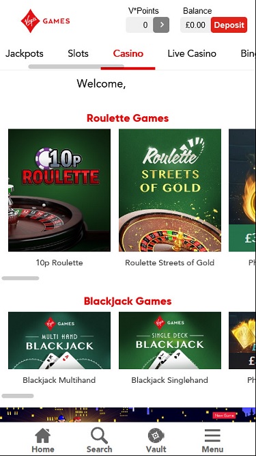 Virgin Games поощряет лояльность игроков, начисляя 1 бонусный балл за каждые 20 фунтов стерлингов, поставленных в играх казино. 100 баллов в казино можно обменять на 1 фунт стерлингов.