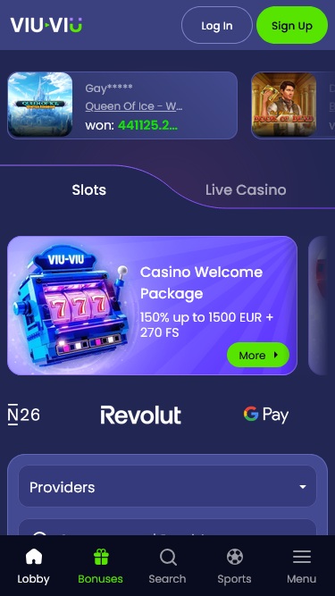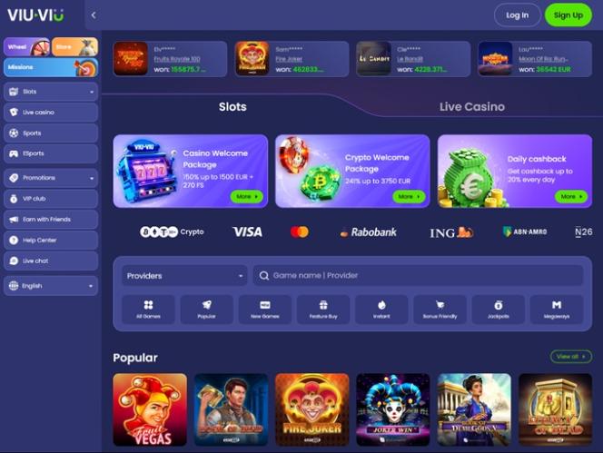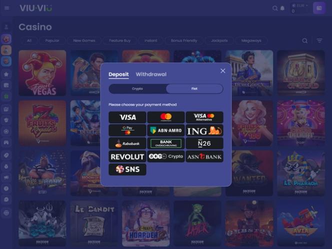 Казино Viu Viu — это игорный сайт, который в первую очередь предлагает игры и контент игрокам из Канады и Нидерландов. Здесь представлен обширный список игр казино, включая слоты, настольные игры, игры с живыми дилерами и игры с мгновенным выигрышем, а также множество вариантов ставок на спорт. Благодаря мощной рекламной программе с бонусами и возможностью использования криптовалюты, неудивительно, что многие голландские и канадские игроки в восторге от этого бренда.