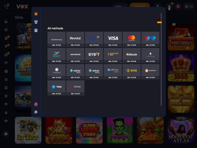 VOX Casino — это игорный сайт, который дебютировал с большим успехом, предлагая широкий выбор игр, включая игры с живыми дилерами, онлайн-слоты, игры в краш и настольные игры, а также множество захватывающих акций, бонусов, событий и турниров. Бренд приветствует игроков из Германии, Литвы, Латвии, Португалии и Швеции.