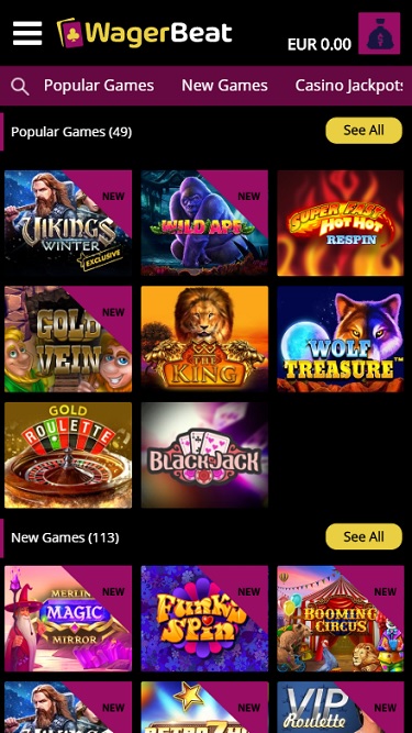 В библиотеке Wager Beat представлено большое количество видеослотов, хотя и не такое большое, как в некоторых других казино, с которыми мы сталкивались. Игры предоставлены такими разработчиками, как Amatic, Booming Games, Endorphina и другими. Вы найдете несколько прогрессивных джекпотов, а также множество мобильных слотов, позволяющих играть со смартфона или планшета.