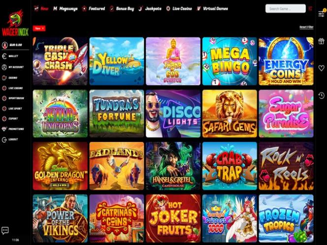 Wagerinox предлагает игрокам обширную библиотеку слотов, которая регулярно обновляется новыми релизами. Игроки могут изучить множество интересных игровых автоматов. Независимо от вашего уровня мастерства или игровых предпочтений, вы сможете найти здесь первоклассный контент для себя.