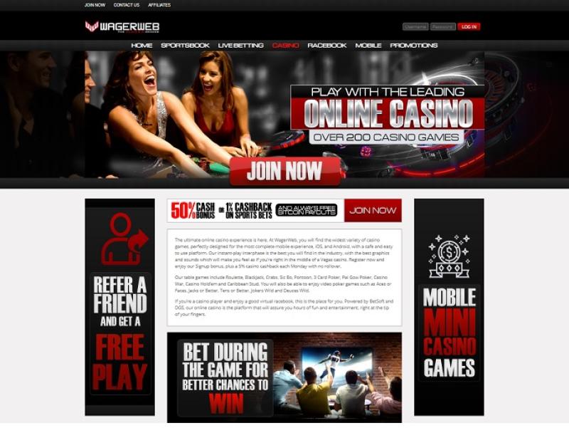 Помимо игр казино, WagerWeb Casino также позволяет игрокам делать ставки на спорт через свой букмекерский сервис.