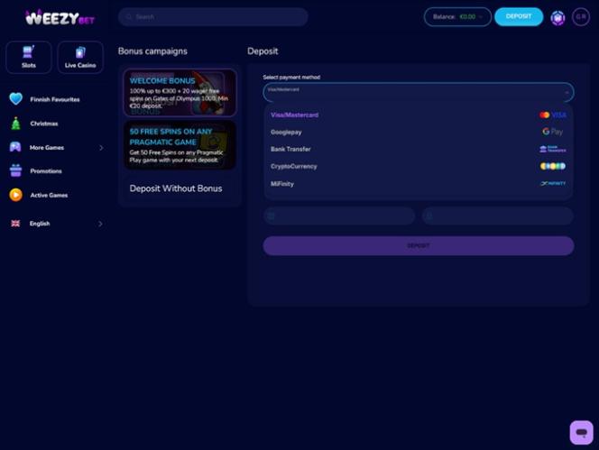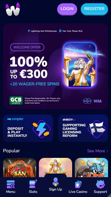 WeezyBet.com — это онлайн-казино, регулируемое и лицензированное правительством Автономного острова Анжуан, входящего в Союз Коморских островов. Этот оператор ориентирован на игроков из Финляндии, Дании, Германии, Нидерландов, Италии, Греции и Канады. Однако, даже если вы находитесь в другой юрисдикции, следите за новостями, поскольку этот бренд выглядит очень привлекательно с первого взгляда.
