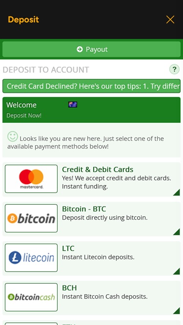 - Игрокам из определенных стран разрешено вносить депозиты только с использованием криптовалютных банковских операций.