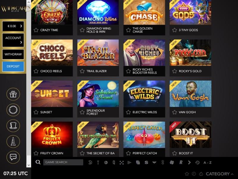 Wild Card City также является домом для 117 Другие игры перечислены ниже: