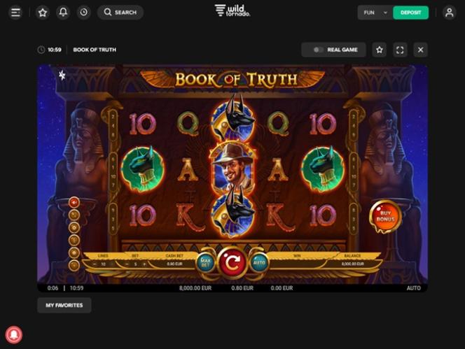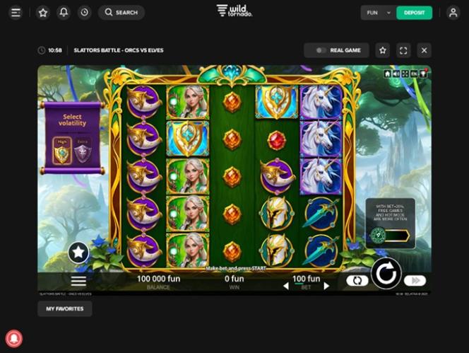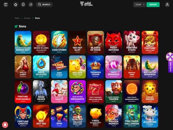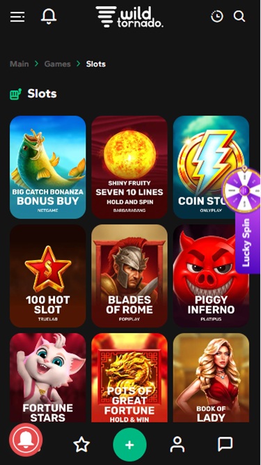 В Wild Tornado представлен неплохой выбор слотов. Казино предлагает игры от таких разработчиков, как Net Ent, NYX, SoftSwiss, Pragmatic Play, Endorphina и многих других. Также доступны прогрессивные джекпоты, предлагающие крупные денежные призы, которые можно выиграть за один спин барабанов. Игра доступна и на мобильных устройствах.