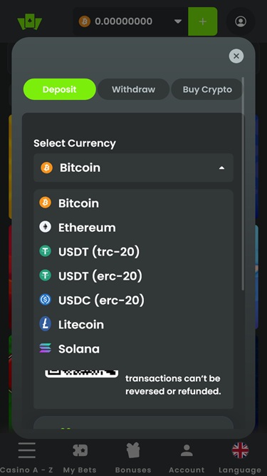 Казино принимает исключительно криптовалюты.