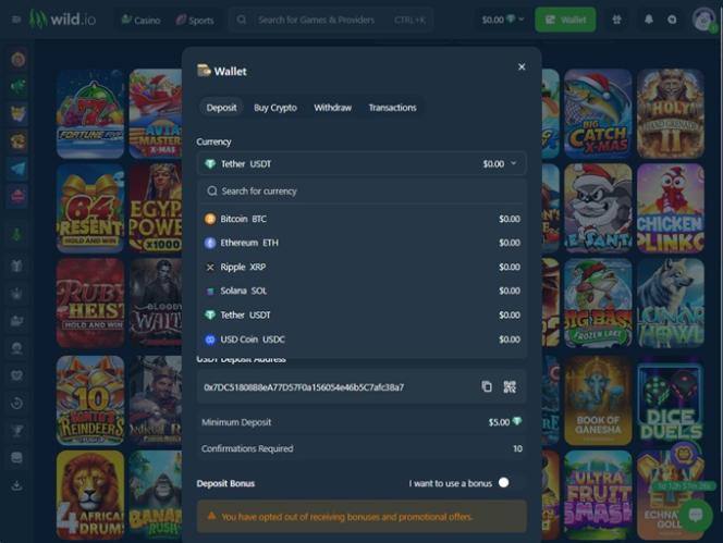 Варианты банковских операций в Wild.io Casino
