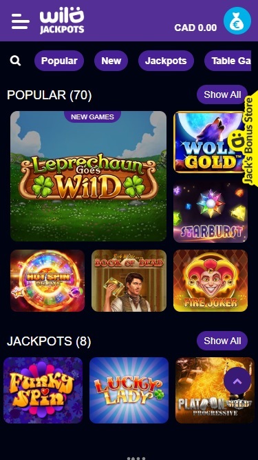 Помимо стандартных игр казино, Wild Jackpot Casino также предлагает своим клиентам игры с живыми дилерами, аркадные игры и скретч-карты.
