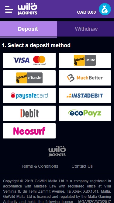 В казино Wild Jackpots используется разнообразная банковская система, позволяющая проводить финансовые операции через банковские переводы, EntroPay, iDeal, Skrill, MasterCard, Neteller, Paysafecard, Visa, Moneta.ru, ecoPayz, GiroPay, SOFORT Banking, Trustly и другие. Время обработки выигрышей составляет 48 часов, а еженедельный лимит на вывод выигрышей — 10 000 долларов.
