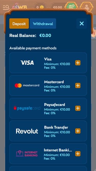 Что касается способов оплаты, то для участников казино доступно большое количество надежных банковских методов , включая банковские переводы, платежные карты, популярные электронные кошельки, такие как Skrill, Neteller, Revolut, другие системы онлайн-банкинга, а также криптовалютные платежи .