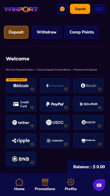 WinPort Casino — это онлайн-казино, приветствующее использование криптовалют, имеющее лицензию в соответствии с законодательством Кюрасао и ориентированное на игроков из США, Канады, Новой Зеландии, Австралии и Великобритании.