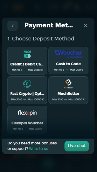 Что касается способов оплаты, в казино Wins Royal вы можете пополнять счет или выводить деньги, используя популярные методы, такие как Visa, MasterCard , Skrill, Neteller, Ecopayz и Neosurf. Криптовалютные платежи также являются приемлемым вариантом , поскольку они стали очень популярным способом пополнения и вывода средств среди игроков.