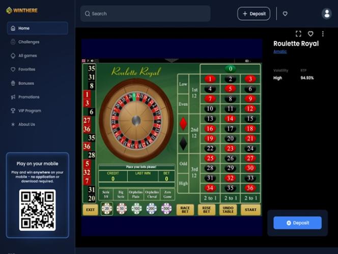 Winthere — это современный игорный сайт, который обещает своим игрокам незабываемые впечатления от азартных игр, предлагая огромное разнообразие игр и развлечений, включая онлайн-слоты, игры с живыми дилерами и настольные игры, а также множество акций и бонусов. На сайте представлены игроки из Бельгии, Франции, Великобритании, Италии, Испании, Австралии, Канады и Нидерландов, которые приглашаются ознакомиться со всем предлагаемым сервисом.