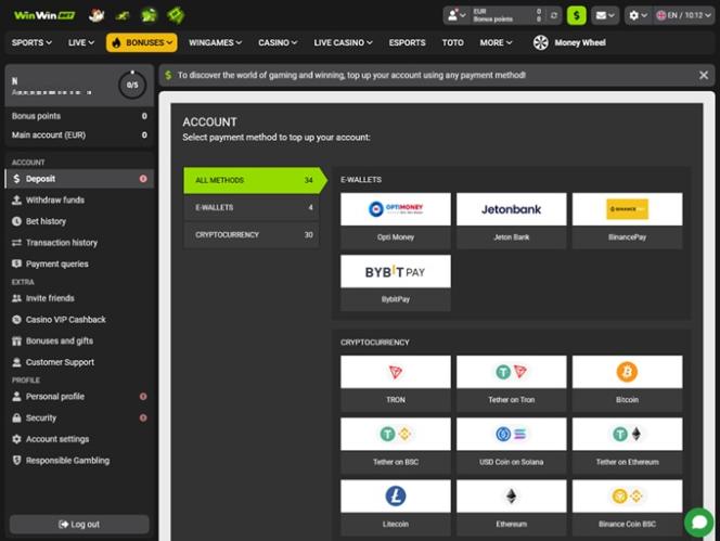 Убедитесь, что выбранный вами способ оплаты доступен в вашей юрисдикции, поскольку доступные варианты зависят от страны. Также обратите внимание, что вывод средств через некоторые способы оплаты может занять до семи рабочих дней.