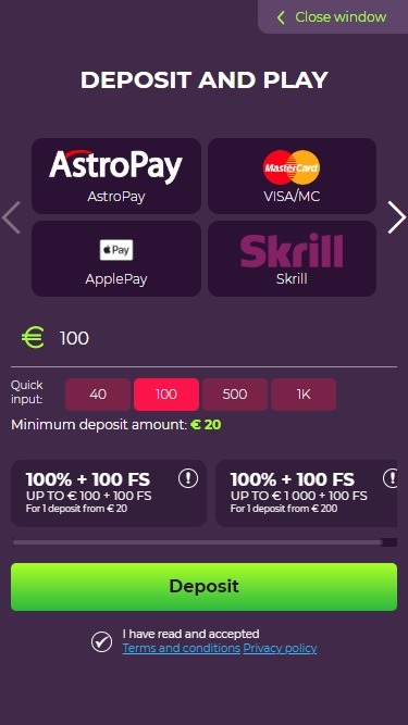 Оператор предлагает обширную игровую библиотеку на прекрасно оформленной платформе казино с полностью функциональным и удобным интерфейсом. Казино включает в себя выгодные промо-предложения и онлайн-турниры по слотам для игроков, любящих азарт соревнований, а касса поддерживает BTC и другие популярные криптовалюты — практически все, что нужно современному игроку!